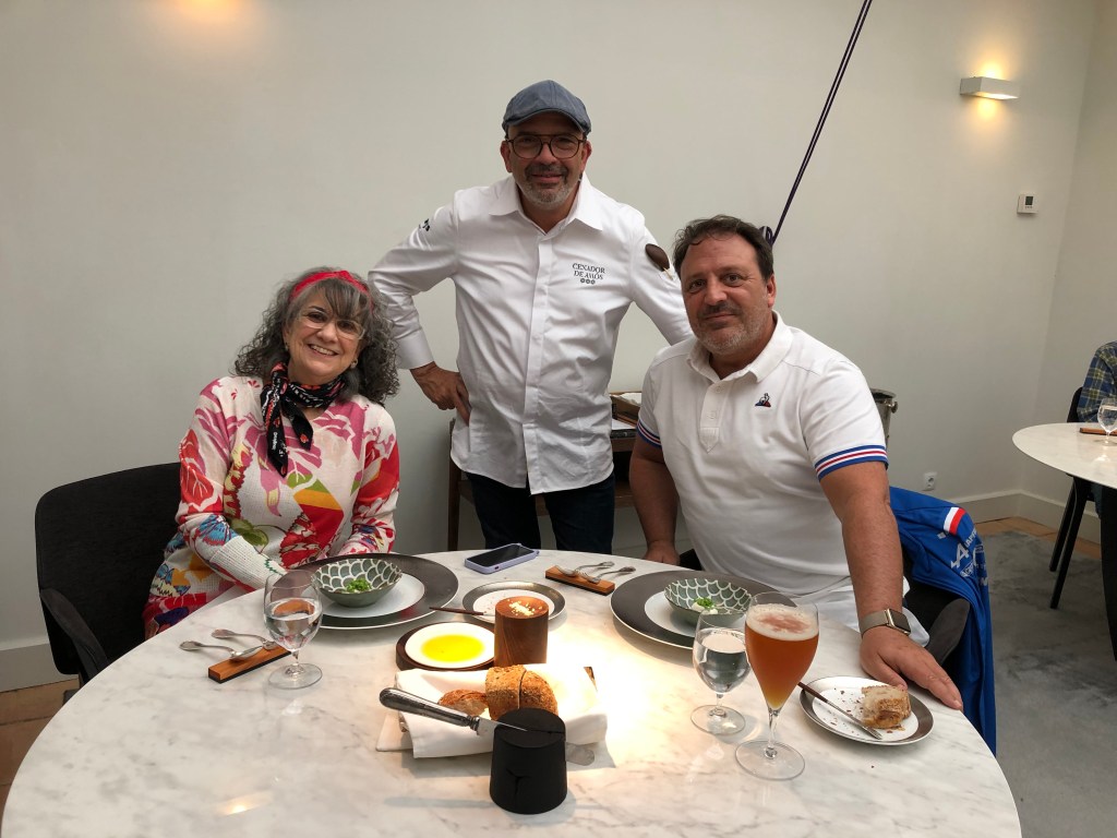 En este momento Jesús hace acto de presencia por las mesas saludando a los comensales. Ya sabéis que para mi son ídolos y por si luego no era posible, me aseguré la foto para el dream team gastronómico, aquí si que no me corto porque esta en ejercicio de su profesión.