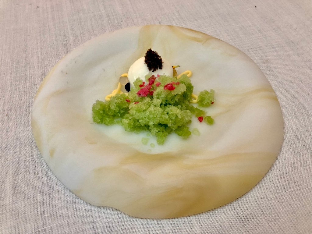 En este caso los jóvenes Iciar Pérez del Restaurante Poemas by Hermanos Padrón y Xune Andrade del Restaurante Monte, ambos con Estrella Michelín y Sol Repsol se han encargado de ofrecernos un menú super equilibrado donde se empastan perfectamente ambas cocinas, tan lejanas pero a la vez tan cercanas a un gusto común. Ambos han conseguido hitos importantes sin que su juventud haya sido obstáculo, hay muchos años de pasión y profesión tras sus fogones; en el caso de Iciar se ha conseguido la primera Estrella de la ciudad en un periodo muy corto desde que arrancara en el hotel Santa Catalina y por lo que respecta a Xune, el regreso a Asturias con su apuesta rural en San Felíz ha sido la consecución de un sueño exitoso, trabajar y triunfar en «la tierrina».