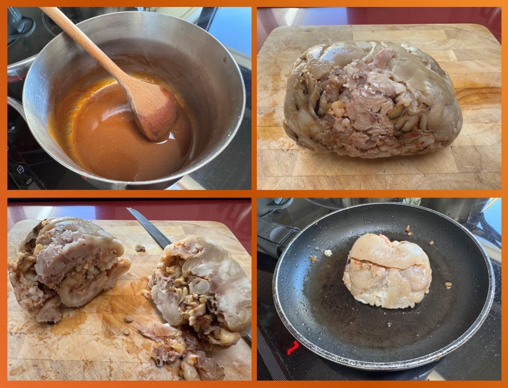 Creo que es una receta bastante sencilla aunque es cierto que requiere cierta elaboración y tiempo. Deshuesar las manos de cerdo en caliente hará que nos quememos un poco los dedos, si se enfría mucho empezarán a ponerse pegajosas y no será tan fácil ir descartando todas las falanges.